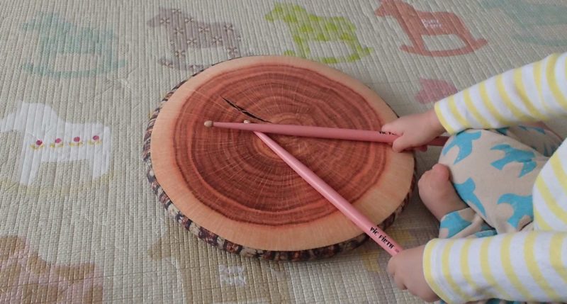 息子が太鼓やドラムに興味を示し始め、私からドラムスティックを奪い取って振り回すようになりました!